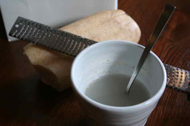 水を火にかけ、れんこん 塩 しょうがを加えてサッと煮立て,沸騰直前に日から下し、温服します。