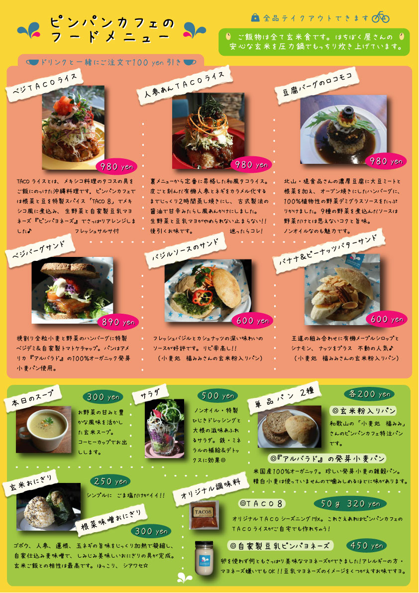 FOODは チキンタコライス以外、すべてビーガン(完全菜食)対応です!