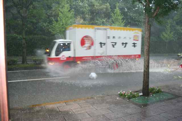 もう日本は、熱帯なんですね。 バイクの人々は、あまりのスコール具合に