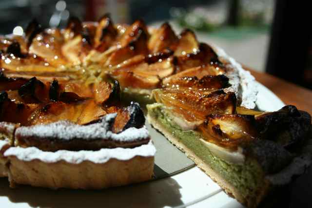 タルト生地に アボカドベースの麻の実たっぷりクリームを詰め、いちじく