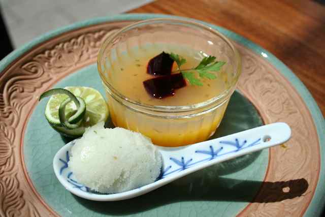 すだちジュレ&バレンシアオレンジの寒天寄せ すだちシャーベット添え