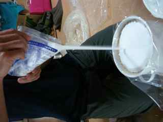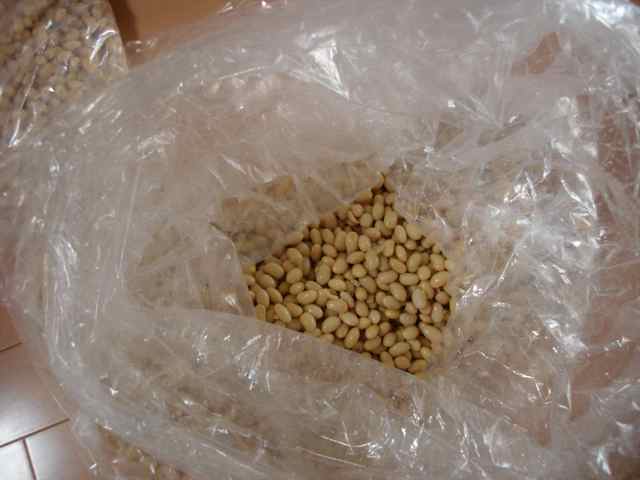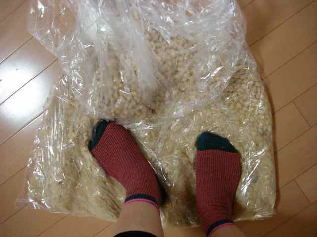 大きなビニール袋を2重にして大豆をIN ! 今回、大豆3キロ 麹 9キロ