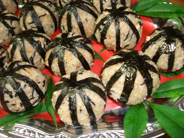 人参のパテはなぜか魚介類の味が!! 黒米入りご飯でのり巻き風に☆ 実家の母が、