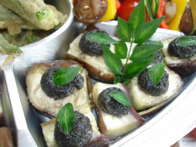 蒸し茄子に自家製黒胡麻味噌をトッピング ひんやり&トロりん