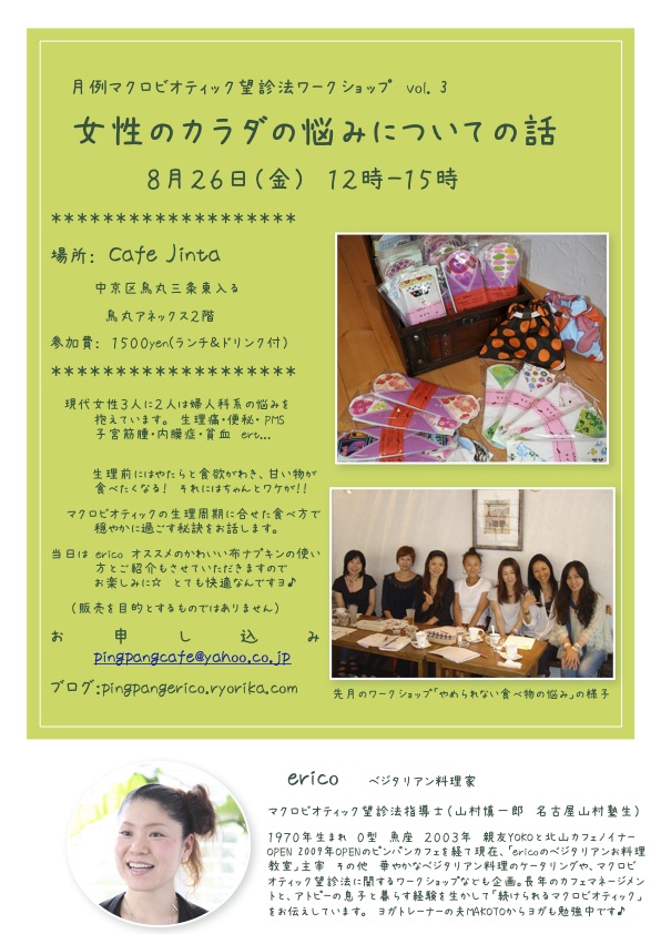 参加費: 1500yen (cafe jinta さんのランチ&ドリンク付)