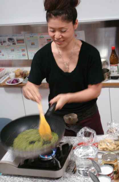 お馴染みグリーンカレーは、ばっちりペーストから作ります。 通常はシュリンプ ペーストや、魚醤を使うカレーですが、100%植物素材だけでさて、どこまで できるのか??