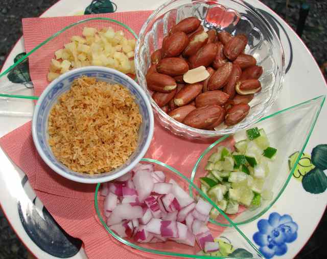 ミーンクン(ピリ辛おつまみ葉包み)の薬味 ココナッツやピーナッツ 味噌