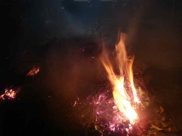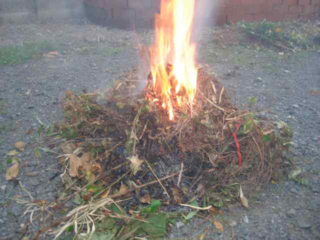ひょわ〜 小ぶりながらも迫力〜 青のガス火じゃないってスバラシイ! 草刈りした葉は
