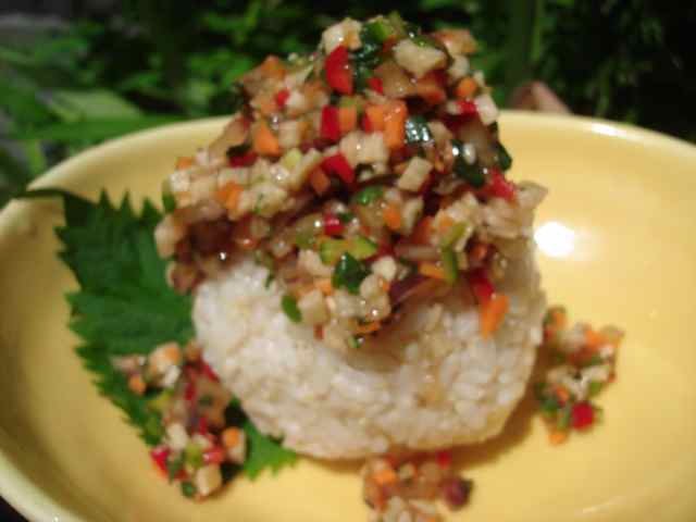 刻んだ香味野菜を中心に色んなお野菜をじゃんじゃん刻んでたっぷりの醤油で和えるだけ!